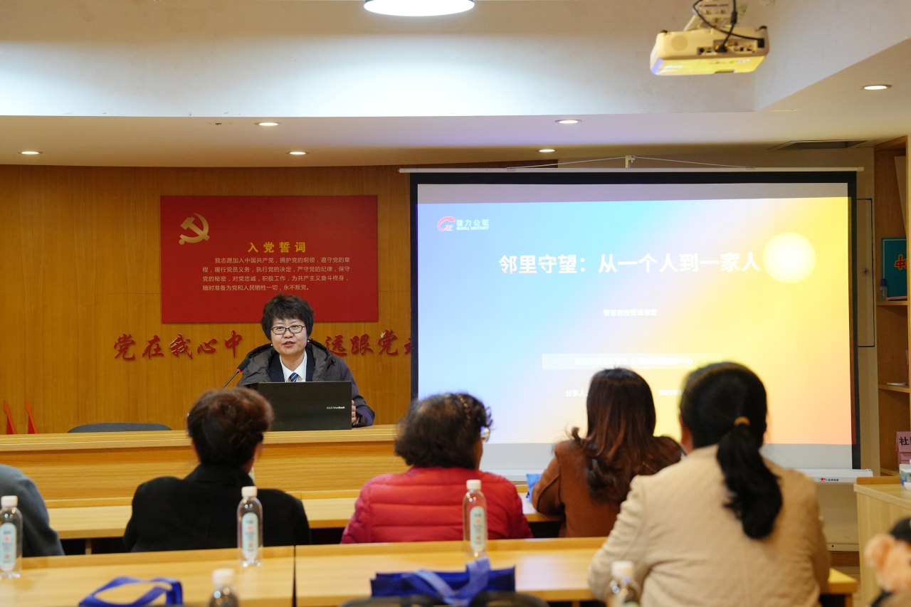 11月26日傍晚,国力公证处应草堂派出所警官夜校邀请,联合四川颐和遗嘱服务中心负责人强美丽,共同举办了一场以“意定监护”为主题的普法讲座,为社区居民送上了一份“晚年权益守护指南”。