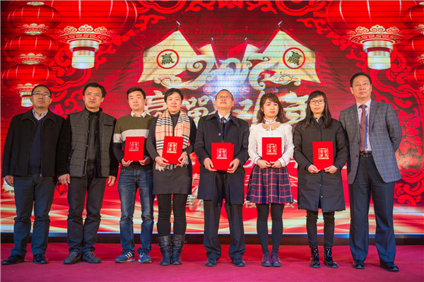 党支部书记王翔在团拜会上宣读《四川省成都市国力公证处关于表彰2016年度业务六部等先进集体和张玲等先进个人的决定》和《四川省成都市国力公证处关于表彰2015年度邹丽丹等公证理论创作先进个人的决定》,并由到会领导进行了现场颁奖。