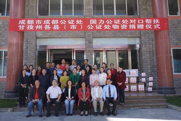 7月28日,我处与成都公证处同仁驱车三百余公里,带着帮扶爱心物资来到甘孜州康定市,与甘孜州司法局等9个公证处开展对口帮扶工作。