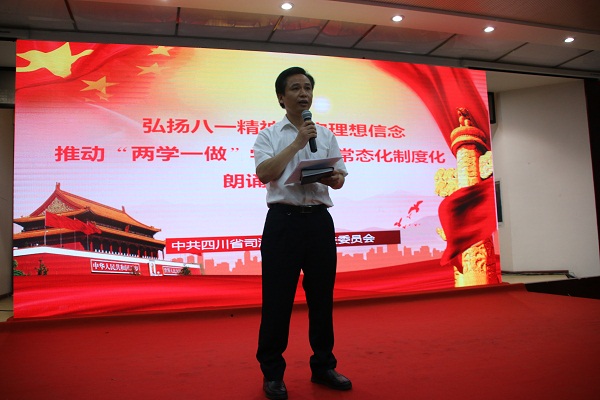 7月28日,在八一建军节即将来临之际,司法厅机关组织转业军人与机关干部职工开展了以"弘扬八一精神坚定理想信念推进'两学一做'学习教育常态化制度化"为主题的庆八一座谈会暨主题朗诵比赛。省司法厅党委书记、厅长陈明国出席并讲话。