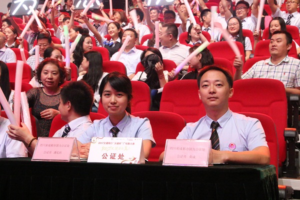 9月24日,2017交通银行“沃德杯”广场舞大赛四川赛区决赛在四川广播电台演播大厅直播,同时腾讯直播、金熊猫直播等网络平台全程转播。根据四川省电视台的申请,国力公证处公证员袁成、潘钇杉对本次大赛的现场进行全程监督。