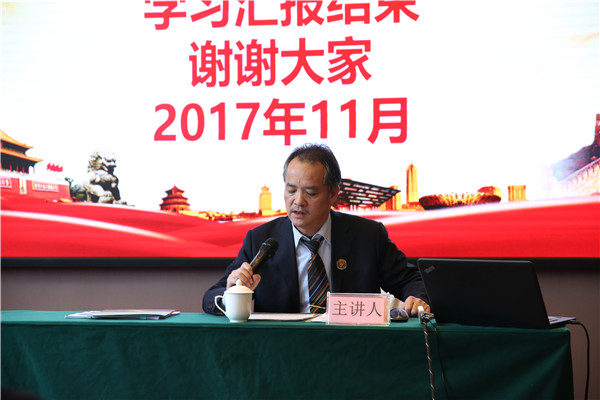 11月26日,国力公证处举办学习十九大报告精神专题讲座。本次讲座邀请了四川交投置地有限公司总经理、成都宜宾商会监事长周朝康先生授课。国力公证处主任王云筠、党支部书记王翔,副主任张玲、曾国强、朱江,业务三部部长代渝,业务五部部长刘达俊,全体公证员以及各业务部业务骨干、行政部代表共计120余人参加了本次专题讲座。