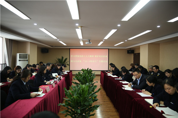 为了进一步弘扬宪法精神,全面贯彻落实十九大精神,着力提高广大公证从业人员遵纪守法、遵守党规党纪的意识。12月4日,国力公证处召开“12•4国家宪法日”专题学习会。国力公证处党支部书记王翔,副主任张玲、曾国强,业务三部部长代渝,全体党员以及职工代表共计50余人参加会议。
