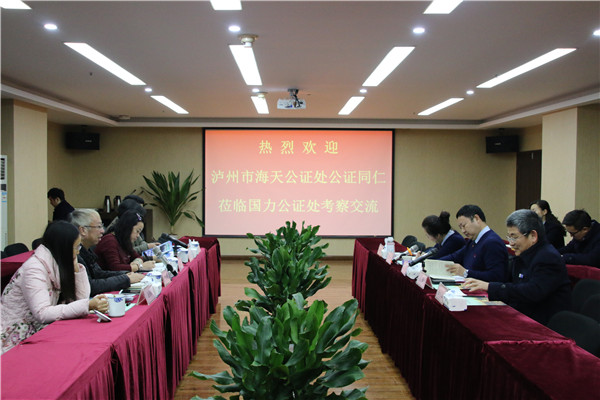 12月13日,泸州市海天公证处主任杨秀红,副主任李霞,公证员兰万里、龙朝彬、屈生奇到我处考察交流。