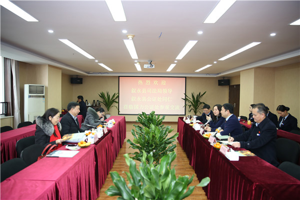 12月25日,叙永县司法局党委书记、局长魏功进,党委委员、副局长夏传敏,叙永县公证处主任魏功纯到我处参观交流。