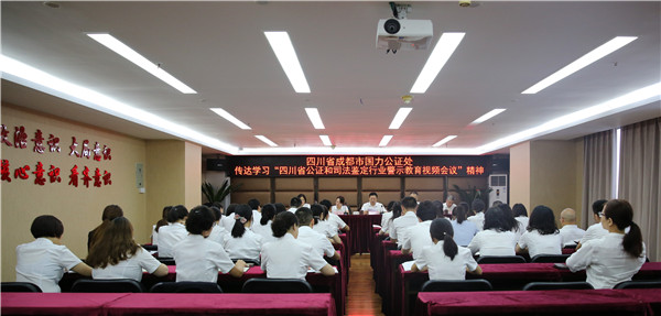 本次会议传达学习了“四川省公证和司法鉴定行业警示教育视频会议”精神。
