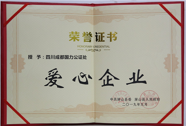 在此次活动中,国力公证处作为爱心企业代表,被授予了“爱心企业”荣誉证书,这不仅仅是一份荣誉,更是屏山县委、屏山县人民政府对国力公证处扶贫工作的肯定。