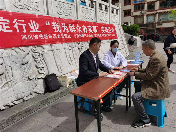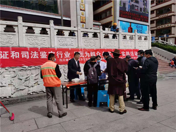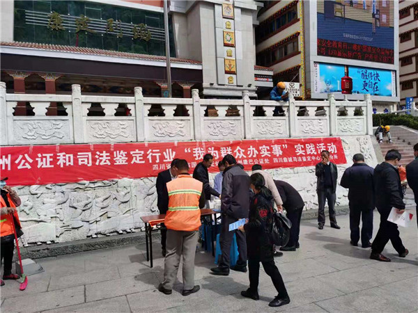 为了满足人民群众对公共法律服务的需求,遵循便民、利民、为民的宗旨。2021年4月28日,甘孜州公证和司法鉴定行业在甘孜州康定市情歌广场开展“我为群众办实事”实践活动。四川省成都市国力公证处、甘孜州康巴公证处、四川鼎诚司法鉴定中心甘孜分所参加此次活动。