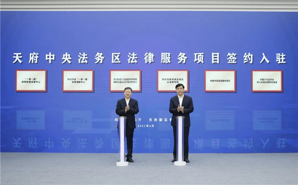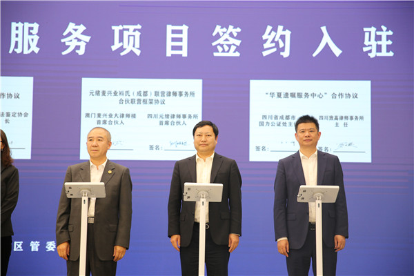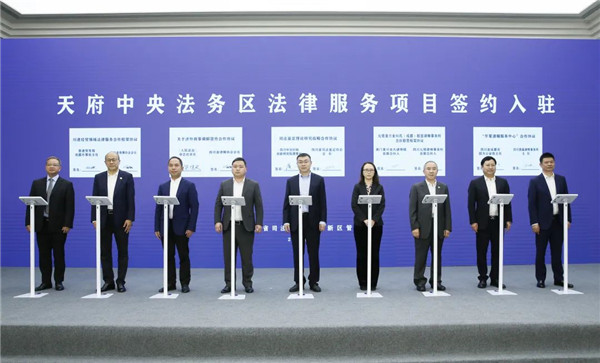 4月27日,四川省司法厅、天府新区管委会在天府中央法务区举行法律服务项目签约入驻活动。10个法律服务项目签约,6个法律服务机构入驻运营,这是天府中央法务区启动运行后引进的又一批高能级法律服务项目和机构。司法部政治部主任、党组成员郭文奇,四川省委常委、政法委书记邓勇出席活动,四川省司法厅党委书记、厅长刘志诚主持签约入驻仪式。