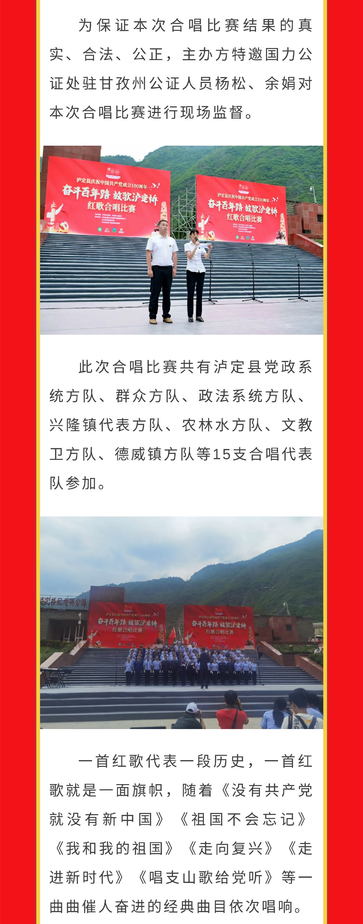 现场监督 | 国力公证助力泸定县庆祝建党100周年红歌合唱比赛