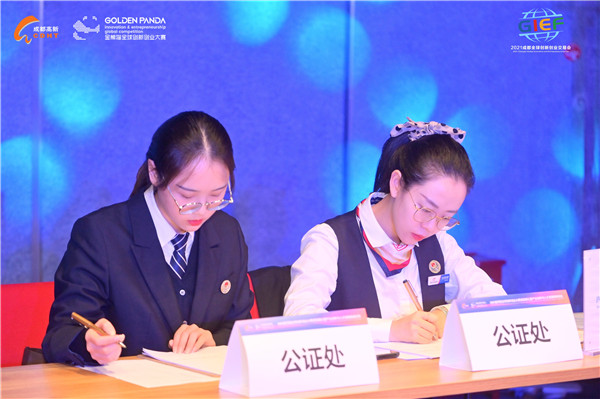 近期,国力公证处受举办方申请,对“2021金熊猫全球创新创业大赛总决赛”进行了现场监督公证。2021金熊猫全球创新创业大赛以打造国际双创大赛知名品牌为目标,以“高素质人才、高精尖技术、高质量项目”招引为核心,面向全球选拔一批攻关“卡脖子”关键核心技术、引领产业能级提升的优秀团队和企业,通过提供平台、开放场景、促进应用创新及商业场景落地,发现和支持一批优质团队及优秀科技创新企业落户成都高新区。