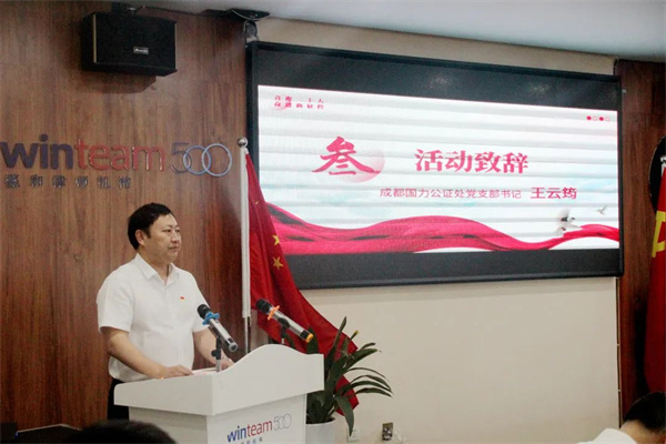 成都国力公证处党支部书记、主任王云筠出席并致辞。“国力公证处将带头率先学习宣传贯彻习近平总书记来川来宜视察重要指示精神。作为当前和今后一个时期的重要政治任务,结合学习宣传贯彻省第十二次党代会精神,实心干事,以实际行动迎接党的二十大胜利召开。”