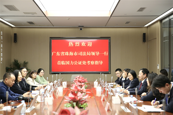 2023年3月13日下午,珠海市司法局党组成员、副局长邱东红,珠海市司法局四级调研员、公证协会会长冯斌,珠海市司法局政治处副主任李芳,珠海市司法局信息办主任陈波及公证行业同仁一行莅临国力公证处考察指导。国力公证处党支部书记、主任王云筠,副主任张玲,副主任刘晓红等热情接待了考察组一行,并陪同参观了国力公证处制证中心、各业务部、远程办证室、司法辅助中心、遗嘱室等新办公区域。
