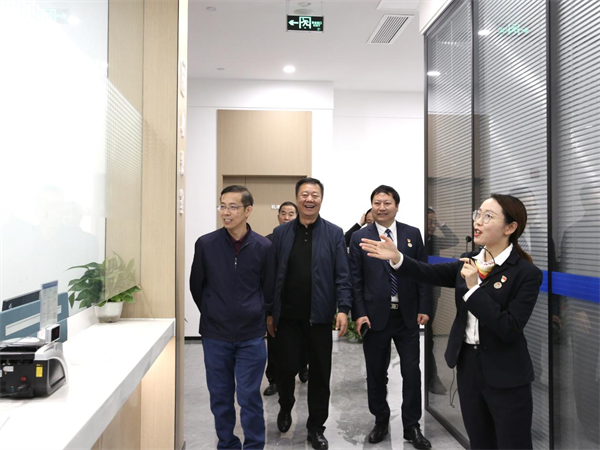 常务理事一行参观了国力公证处制证中心、各业务部、远程办证室、司法辅助中心、遗嘱室等新办公区域和党建文化设施,详细了解了我处党建引领、历史沿革、业务范围、人才培育等方面的工作情况。