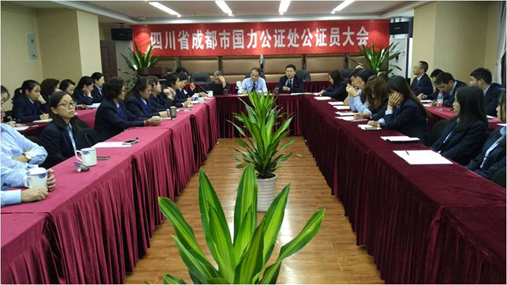 王云筠主任在讲话中指出,司法部、司法厅对本届协会寄予厚望,对四川公证工作表示十分重视,肯定我省的公证工作这些年所取得的成就。王主任在会议上要求我处在今后的公证工作中,应加强自身素质的提高,加强对公证人员的培训,推进优秀公证员的职称评审工作;加强内部管理,利用好合作制的优势;开拓公证业务的新方向,吸收优秀人才;尽快完善信息化平台建设,提升公证工作效率和效益;加强对公证处的宣传,致力于建设省级文明公证处。