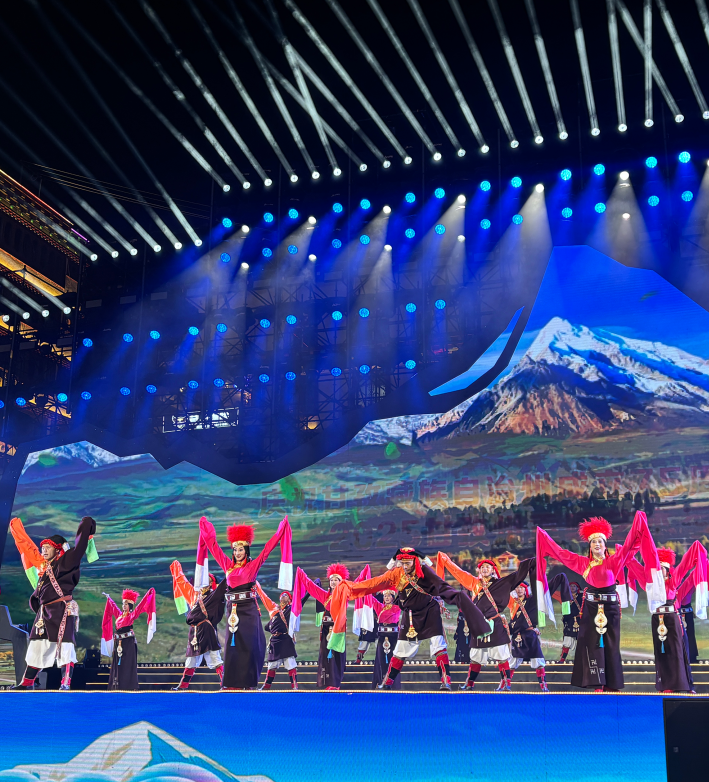 文艺汇演作为建州75周年暨贡嘎艺术季系列活动的重头戏——原生态(非遗)舞蹈展演竞赛,在万众期待中拉开帷幕,历时两天30余个精品节目轮番上演,生动绘就了锅庄等非遗文化历久弥新的传承画卷,深情讴歌了甘孜在经济发展、民生改善、民族团结进步等领域的卓越成就;精彩诠释了“贡嘎新作舞蹁跹,高原文脉谱新篇”的深厚篇章,也立体展现了甘孜儿女砥砺奋进的时代群像。