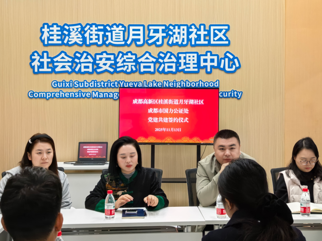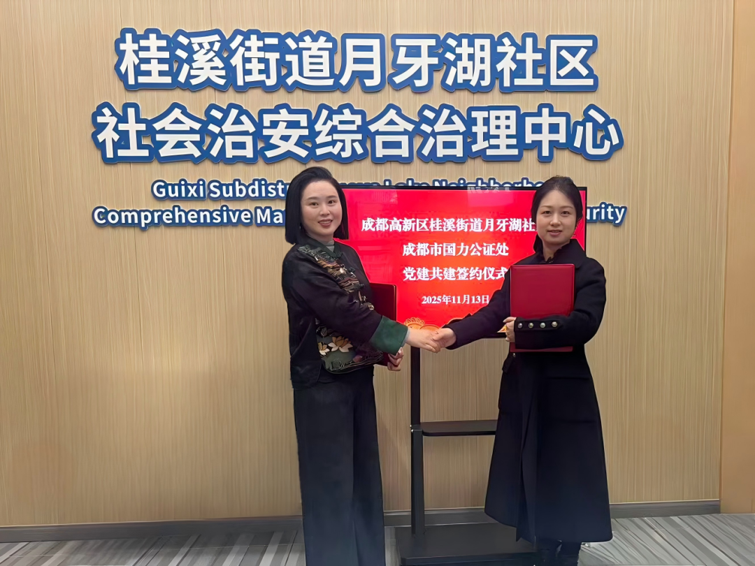为充分发挥党建引领基层治理的核心作用,切实回应多元化产业社区的法律服务需求,2025年11月13日上午,国力公证处第一党支部书记潘钇杉一行在高新区桂溪街道月牙湖社区党委参加了党建结对共建签约仪式。