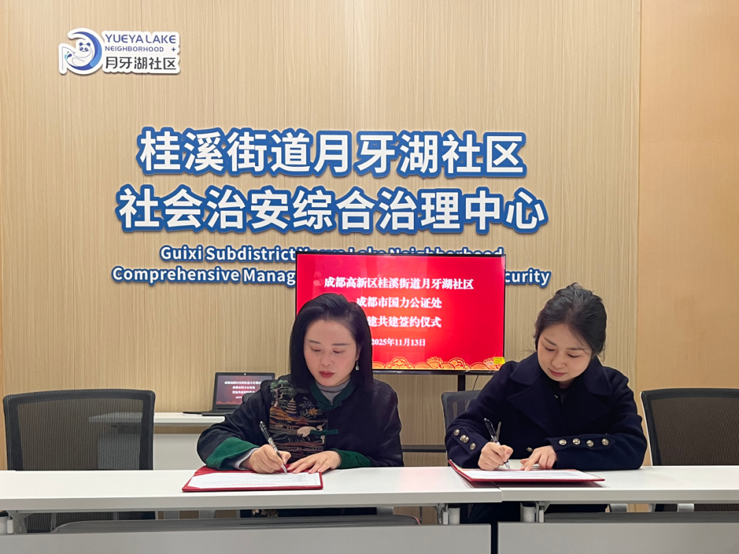 签约仪式上,国力公证处第一党支部书记潘钇杉与高新区桂溪街道月牙湖社区书记陈立容共同签订了《成都高新区桂溪街道月牙湖社区与四川省成都市国力公证处党建结对共建协议书》。
