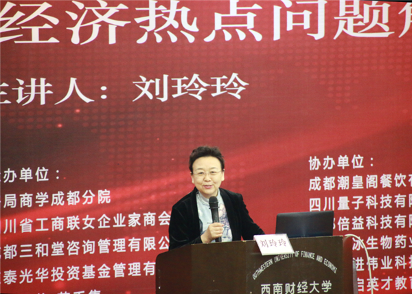 讲座由著名经济学家、清华大学经济管理学院刘玲玲教授主讲,刘玲玲教授对供给侧改革、中国制造2025十大领域十大机会、户籍人口城镇化、人民币汇率、成渝经济区发展中的机会等几大国内经济热点问题进行详细讲解,对我国经济现阶段面临的机遇和挑战提出了鲜明的观点与犀利的看法,并就经济问题与参会代表进行了热烈的讨论。