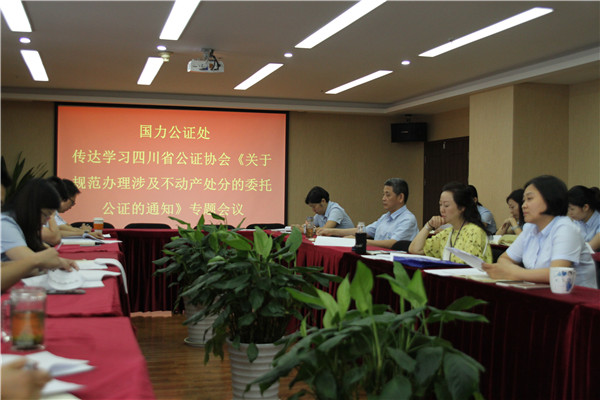 6月28日,国力公证处召开专题会议传达学习四川省公证协会《关于规范办理涉及不动产处分的委托公证的通知》。国力公证处副主任张玲、曾国强,主任助理、质量管理委员会副主任刘晓红及质量管理委员会全体委员参加会议。
