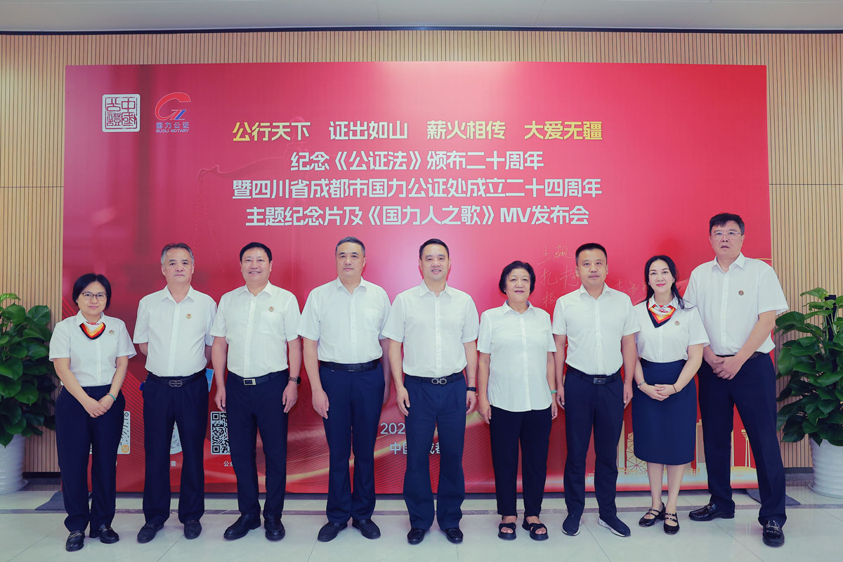 2025年8月26日上午,四川省成都市国力公证处沉浸在一片热烈而庄重的氛围中,“公行天下 证出如山 薪火相传 大爱无疆”主题纪念片及《国力人之歌》MV发布会在此隆重举行。四川省司法厅党委委员、副厅长、省公证协会党委书记王飙,四川省公证协会党委副书记、会长扎柯,四川省司法厅公共法律服务管理处副处长李孟锦,四川省公证协会秘书长梅勇出席本次活动。